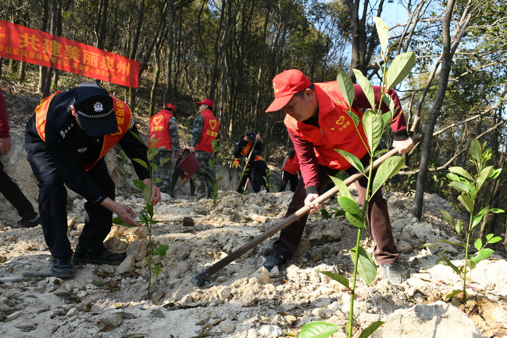 3月10日,南安罗山国有林场联合南安市公安局、南安市法院、南安市检察院、南安市林业局、南安市联执办等单位的党员近60人,在罗山林场义务植树点开展“爱绿植绿护绿同护绿水青山”义务植树活动。