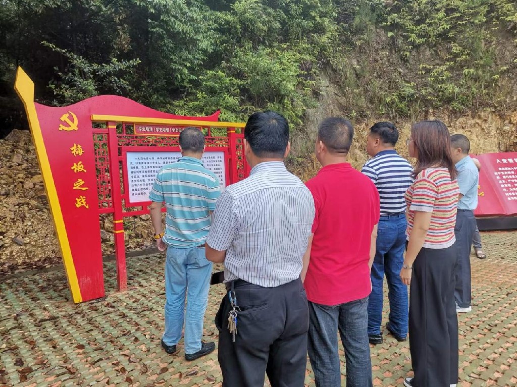 支部党员先后来到李溪人民公社(李溪旧会场)和戴云之战--梅坂战斗遗址。李溪人民公社始建于1974年,该建筑高达10米,墙壁完全采用石头垒砌,在那个年代只能靠肩挑背扛完成,耗时近3年才完工。戴云之战--梅坂战斗遗址发生于1947年7月,中共闽中地委领导的戴云纵队在暗林口战斗中分散突围,高祖武、许集美率领三十多人,遭到多我数十倍的国民党省保安团、县、乡自卫队等的围追堵截。辗转到李溪梅坂虎贲山时,短兵相接,血肉搏斗中,高祖武等十余位指战员壮烈牺牲。游击健儿把青春献给人民解放事业,巍巍戴云埋忠骨,烈士鲜血铸军魂。