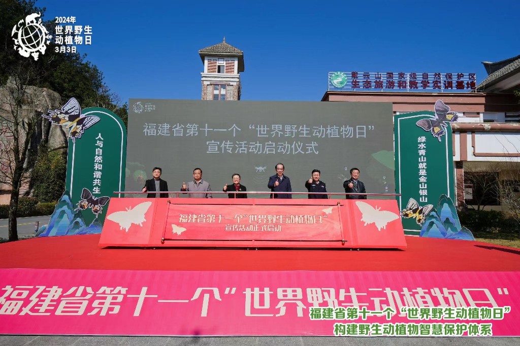 今年3月3日是第十一个“世界野生动植物日”,我国活动主题为“构建野生动植物智慧保护体系”。3日上午,福建省林业局、国家林业和草原局福州专员办、福建省公安厅、福建省野生动植物保护协会等单位在戴云山保护区生态旅游和教学实训基地举办福建省第十一个“世界野生动植物日”宣传活动。
