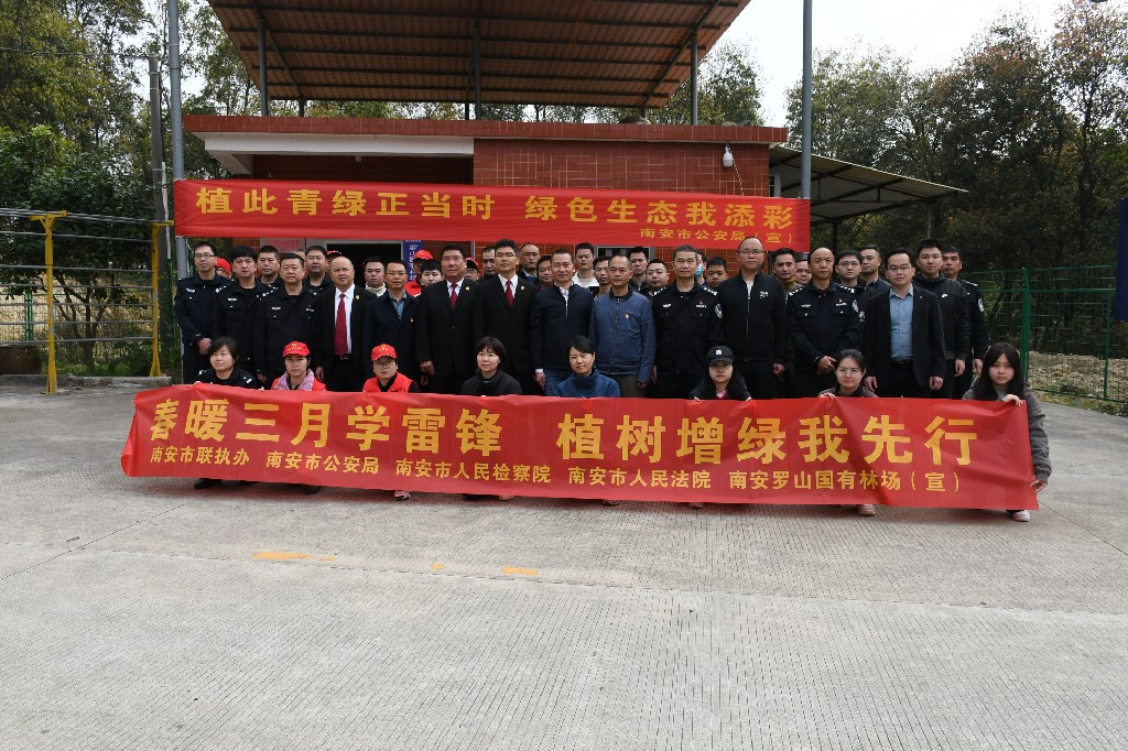 3月8日,南安罗山国有林场联合南安市公安局、南安市法院、南安市检察院、南安市联执办等单位的党员近50人在罗山林场义务植树点开展“厚植生态优势共建多彩泉州”义务植树活动。
